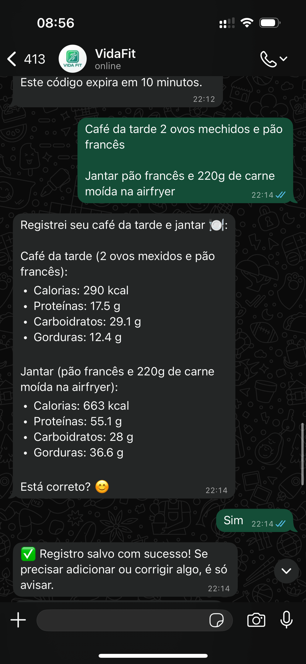 Pessoas que querem cuidar da saúde desistem por causa de apps complexos e falta de constância. O VidaFit simplifica o acompanhamento de alimentação, treinos e progresso usando apenas o WhatsApp.